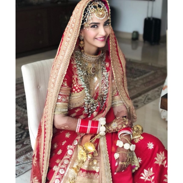 The bridal look often includes a maang tikka, matha patti, nath, rani haar, bajubandh (armlet), and haath phool (hand harness). Each ornament corresponds to the ancient concept of 'solah shringar', or sixteen adornments that complete a bride’s beauty.