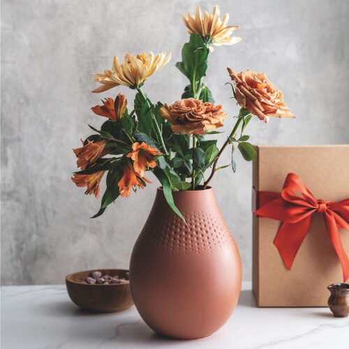 We have curated three terrific products from this brand. First up is their Manufacture Collier Terre Perle Vase. Priced at ₹4,200, this ceramic vase, with a matte, structured surface in earthy colours, is a true gem for your home.
