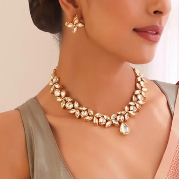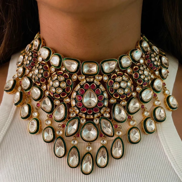 Unlike heavier, highly ornate jewellery that often stays neatly packed away after the wedding, kundan pieces are surprisingly wearable. Their softer gold tones and refined setting make them easy to mix and match with different outfits across multiple occasions. A classic kundan choker can elevate a silk saree just as effortlessly as it complements a contemporary bridal lehenga.