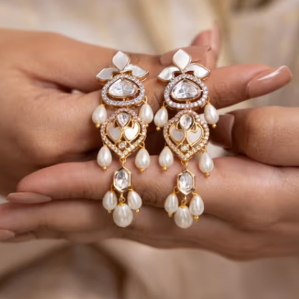Joules By Radhika Elaris White Kundan Pearl Earrings, ₹4,000