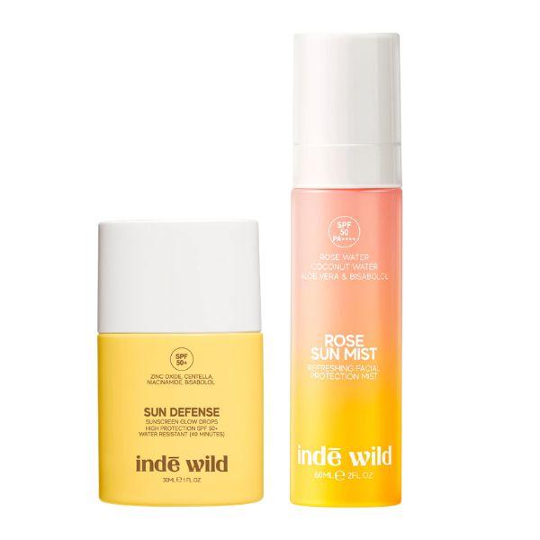 inde wild Sun Defense Glow Drops SPF 50+ PA++++ Sunscreen + Rose Sun Mist SPF 50 PA+ Combination, ₹2,048