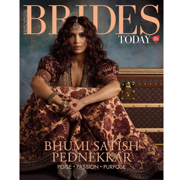 The atmosphere on set is warm and exciting, the subdued clamour of the crew punctuating the air as we capture look after look. Amid this organised chaos is our cover star, Bhumi Satish Pednekkar, visibly enjoying herself in JJ Valaya couture that makes her shine. “Bridal couture carries a kind of magic that’s hard to describe. The craftsmanship, the grandeur, the textures, the theatre of it all...” she gushes.