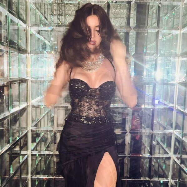 Patani looked absolutely gorgeous in an embroidered lace black corset top and a sarong skirt of the same shade. You can totally steal this look and take it to your bachelorette! Wear a Swarovski neckpiece to add some shine to your all-black look!