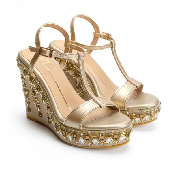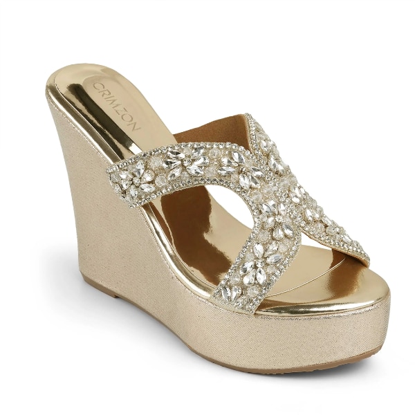 7. Crimzon Norah-Gold Embellished Wedges, ₹10,500