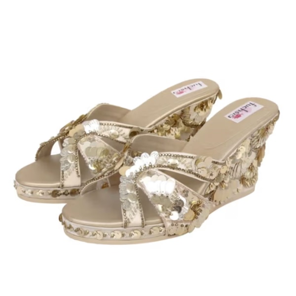 8. House of Vian Gulzaar Gold Embellished Wedges, ₹5,400