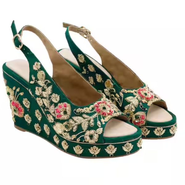 When it comes to wedding footwear, embellished wedges strike that rare sweet spot where fashion meets function. They’re sturdy yet elegant, festive yet practical—designed to keep up with every moment of celebration. Whether paired with a flowing lehenga or a contemporary sari, these versatile shoes promise comfort, confidence, and a little extra sparkle, ensuring you’re dancing through the night with style firmly on your side.