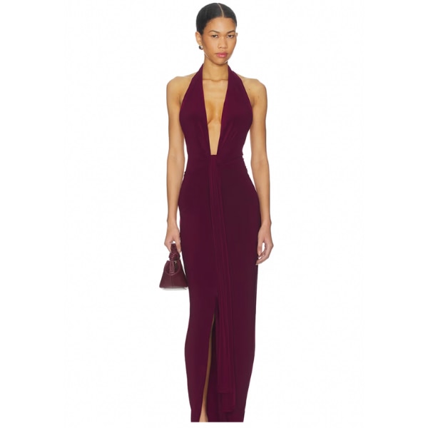 Deme By Gabriella Wine Net V-, Halter Kimberly Draped Maxi Dress, ₹39,875