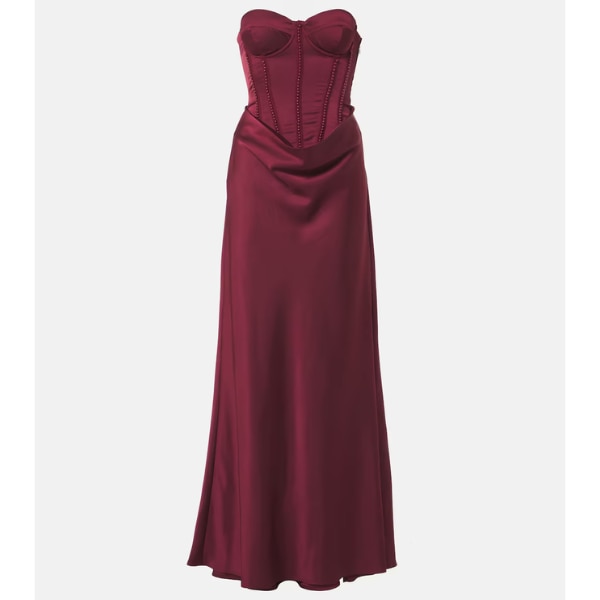 Whether styled in fluid silhouettes or structured cuts, oxblood gowns carry an innate sense of confidence, making them a natural choice for cocktail soirées. Timeless yet striking, the shade transcends seasons, proving its place as a wardrobe staple for celebratory moments like your friends' cocktail.
