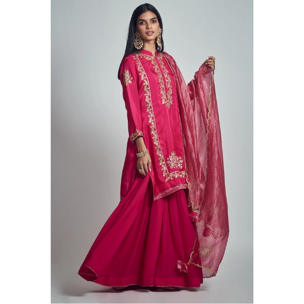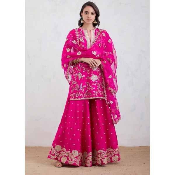 Sheetal Batra Nasira- Hotpink Pink Habutai Silk Gota Patti Embroidered Kurta With Garara And Dupatta, ₹21,200