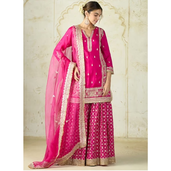 Versatile, striking, and endlessly celebratory, the rani pink embroidered sharara is a wedding wardrobe hero you’ll keep coming back to. From intimate ceremonies to high-energy dance floors, this silhouette moves with you and shines through every celebration. If your festive closet is craving a fresh yet classic update, these seven picks promise to deliver style, elegance, and just the right amount of shaadi sparkle.
