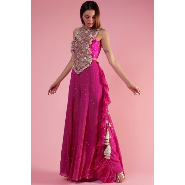 Aum Ashima & Asit Fuchsia Peplum Sharara Set, price on request