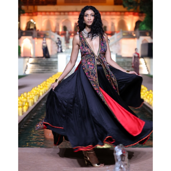 PB: For me, AMER was about reimagining the fort’s beauty into something intimate and personal. The arches, frescoes, and carved details became motifs, textures, and surface treatments across the collection. Instead of recreating architecture literally, we translated its spirit—the sense of majesty and history into fluid silhouettes and modern festive wear. It’s about wearing a piece of Jaipur’s legacy in a way that feels effortless today.