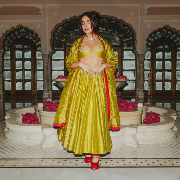 BT: Your new collection ‘AMER’ takes inspiration from Jaipur’s Amer Fort and its intricate craftsmanship. What was your process of translating such architectural grandeur into wearable ensembles?