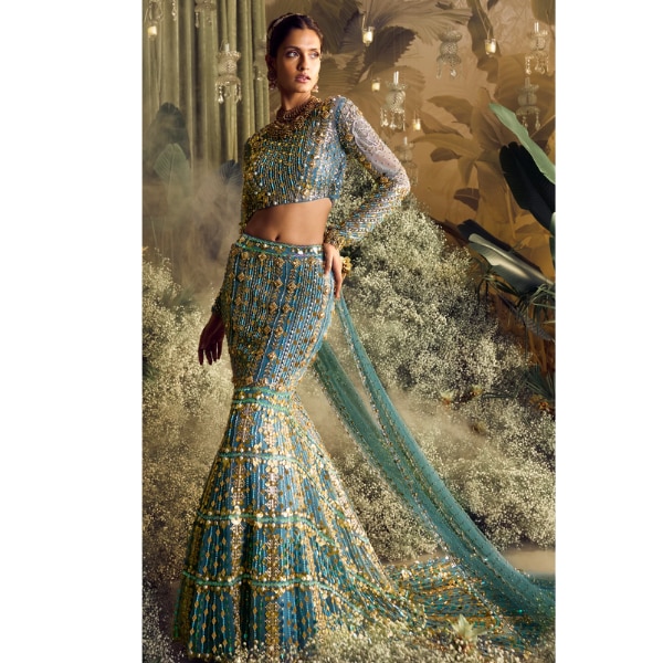 Papa Don't Preach Sophie- Blue Mermaid Lehenga Set, ₹430,890
