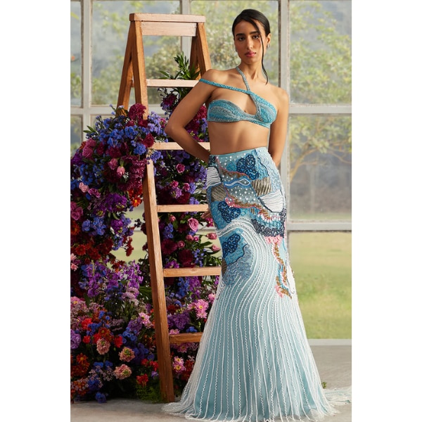 Shivan & Narresh Azure Vine Bustier with Fish Cut Skirt, ₹ 368,950