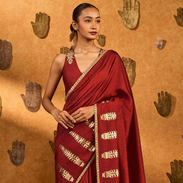 House of Masaba Red Fern Flame Saree, ₹26,000