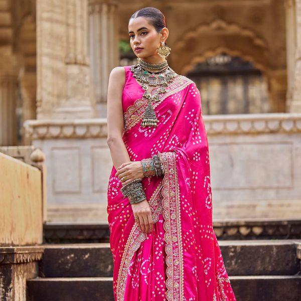 Lashkaraa Fuchsia Modal Gingham Sequins, Zari, Bandhani Pre-draped Saree And Blouse, ₹39,800