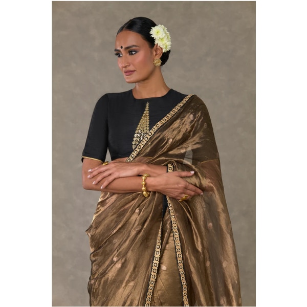 Ready to add a metallic saree to your destination wedding wardrobe? Here are some brands creating beautiful pieces that balance shimmer with sophistication: