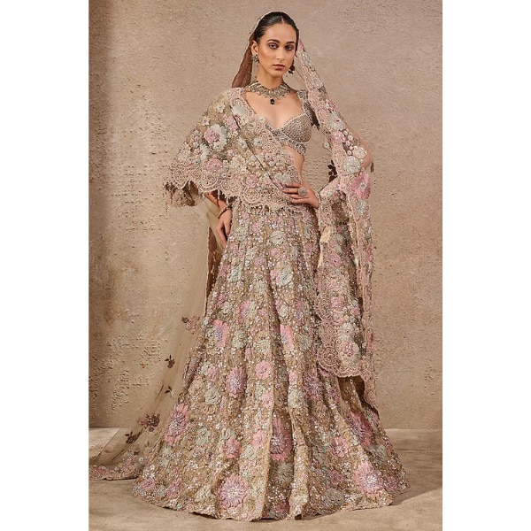 5. Tarun Tahiliani Multi-Colored Tulle Floral Motifs Embroidered Lehenga Set