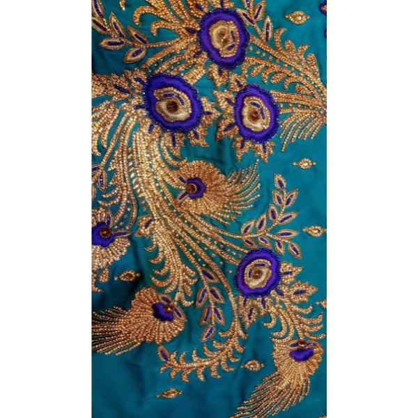 Zardozi as we know it today reached its zenith under Mughal patronage, particularly during the reign of Emperor Akbar in the 16th and 17th centuries. Royal ateliers flourished, producing elaborate garments, court textiles, canopies and ceremonial pieces adorned with real gold and silver threads, pearls and precious stones. The embroidery became synonymous with power, wealth and refinement, reserved almost exclusively for royalty and nobility. However, the decline of imperial patronage during Aurangzeb’s reign led to a period of stagnation, pushing many artisans to abandon the labour-intensive craft.