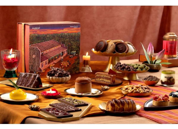 Manam’s Diwali hampers turn chocolate into a full-on festive adventure. From bite-sized Diwali Indulgence Boxes to show-stopping 64-piece centrepieces, there’s something for sharing, passing around, and tasting together. For the curious, the Treats & Tablets Box and Tablet Library let you explore flavours like raspberry & rose, coconut & curry leaf, and pistachio fudge, while themed boxes—Vegan, Dark, Milk, and Sweet & Spice—cater to every preference. Add in their celebration cakes, barks, and curated spreads, and you’ve got a chocolate-filled table that’s as playful as it is indulgent.
