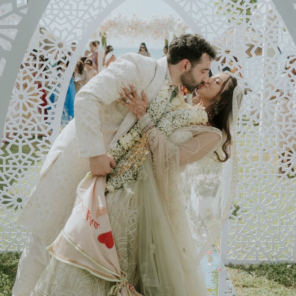The story began in a London town hall on February 22, 2025, where the couple exchanged vows in an intimate civil ceremony attended by 20 of their closest loved ones. It set the tone for the larger wedding that followed, that was lowkey yet deeply meaningful. The bride wore a simple white maxi dress, and the evening ended with dinner and dancing at the groom’s favourite Lebanese restaurant. Two months later, the celebrations moved to Mauritius, where Ramjutan had always dreamt of marrying with her family around her.