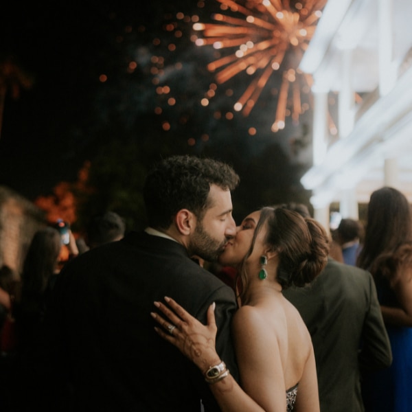 Borders closed during the pandemic, but their bond only strengthened. Finally, in 2022, Ramjutan moved back to London, switching careers and eventually becoming an entrepreneur. And then, there was no turning back. The pair got engaged in Crete in 2023 after a dreamy proposal where Dekmak led Ramjutan through a deck of handwritten revision cards—each with a question from their early days—ending with him on one knee on a secluded beach.