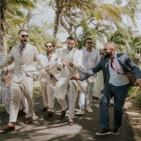 The Mauritian celebrations opened on April 17 with an Arabian-themed sangeet at the Ramjutan family home—a warm, fairy-lit evening with Arabic seating by the pool and performances by friends and family. The highlight was a surprise dance by the groom and his friends.