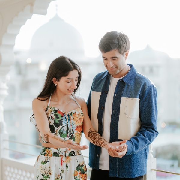 For their wedding, the couple chose Udaipur as a meaningful middle ground for their global guest list, while also honouring their Indian roots. Hosted at the Fairmont Udaipur Palace, the celebration unfolded over three days. Inspired by the idea of a modern Maharaja and Maharani, each event became a chapter in their story, blending heritage, design, and fun.