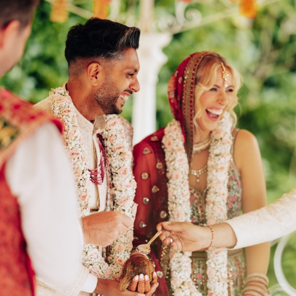 After the Vedic wedding, the setting shifted for a civil ceremony under a delicate floral arch. A brief drizzle threatened the moment, but the skies cleared just in time. Surrounded by loved ones, Victoria and Rishi exchanged vows, sealing their union in a way that felt true to them.