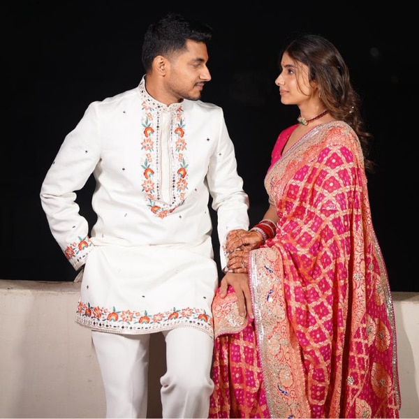 The reception was a heartfelt tribute to Nayab's roots, with cuisine specially curated to reflect the authentic flavors and warmth of Sri Ganganagar. Guests were treated to home-style dishes that captured the essence of Rajasthani hospitality, creating an atmosphere that felt both intimate and celebratory. For the evening, Nayab wre an ensemble by Jigar and Nikita, while Ayush was styled by Suhaas Grover, blending contemporary elegance with traditional sensibilities.