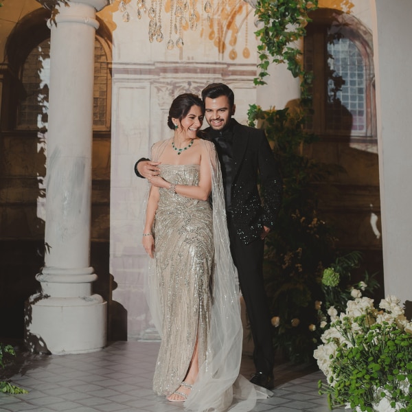 For their looks, the couple turned to India’s leading designers. Vrinda wore Gaurav Gupta for the cocktail, Dolly J for the mehendi, Manish Malhotra for the sangeet, Punit Balana for the haldi, and Falguni & Shane Peacock for the wedding. On the other hand, Goyal's wardrobe featured Manish Malhotra, Abhinav Mishra, Tarun Tahiliani, Punit Balana, and Sabyasachi, respectively.