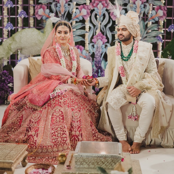 The wedding itself was a vision of elegance and emotion. Vrinda and Goyal exchanged vows under a floral mandap surrounded by a botanical perfume bar, where guests could explore fragrances inspired by the ceremony’s flowers. The soft notes of jasmine and rose lingered in the air as the couple tied the knot, blending devotion with detail in the most poetic way.