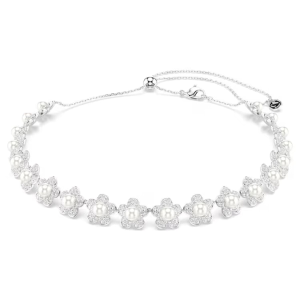 This radiant choker features crystal pearls, round cut, white pearls and a sliding ball lobster clasp. The floral-themed strand of pearls stands out with its glittering pavé petals. Pair it with your occasion wear and thank us later!