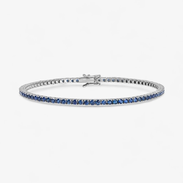 This blue sapphire tennis bracelet is as classic as they come, available in 14K yellow gold and white gold. Pick the diamond size and bracelet length which suits you best, before flaunting away!
